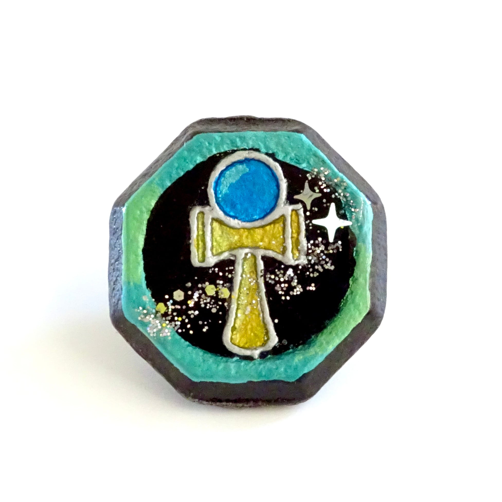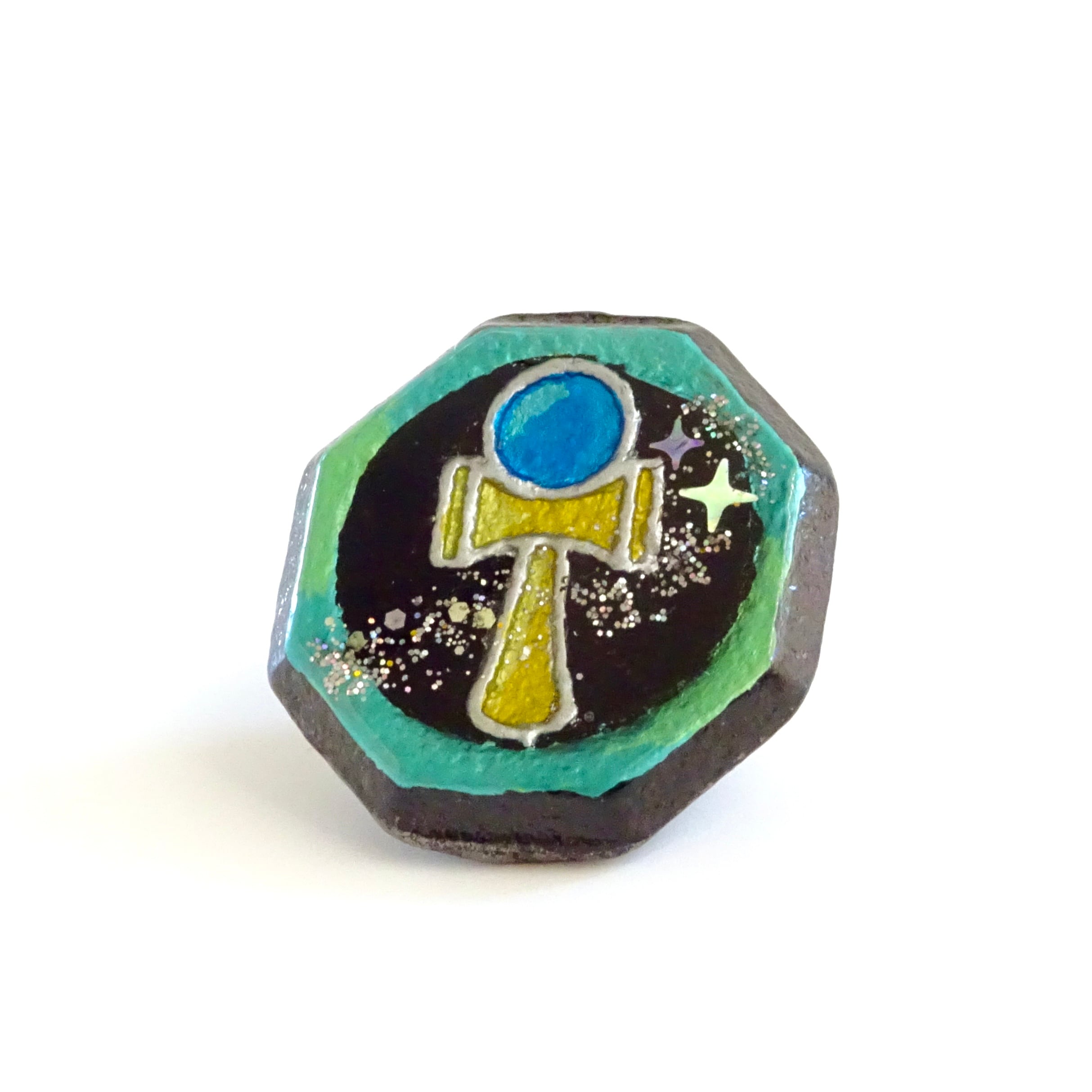 ノーマルベーゴマに一つ一つ丁寧にデコレーションを施し、透明樹脂でコーティングしました。